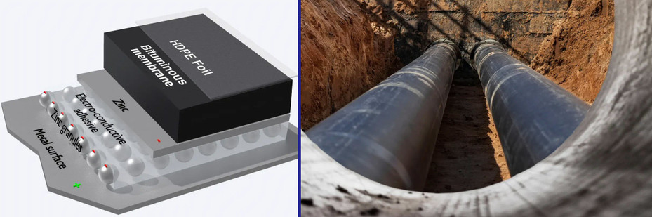 Passiivinen korroosionesto saavutetaan bitumikalvolla, joka on päällystetty korkealaatuisella HDPE-kalvolla. Tämä rakenne takaa erinomaisen tiivistyksen ja muodostaa tehokkaan suojan mekaanisia vaurioita, happoja ja maaperän kosteutta vastaan, estäen korroosion syntymisen. Lisäksi materiaali kestää venytystä ja taivutusta sekä on täysin vedenpitävä.