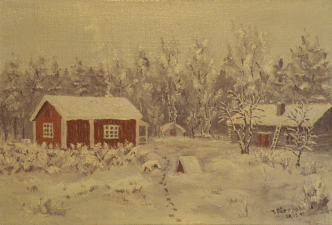 Öljyväri kankaalle, 40 x 60 cm, sekatekniikka, vuosi 1991, maalaus puisessa kiilakehyksessä, pakattu pahviin.